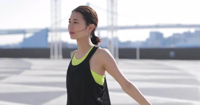 Young Japanese woman training downtown Tokyo, Japan