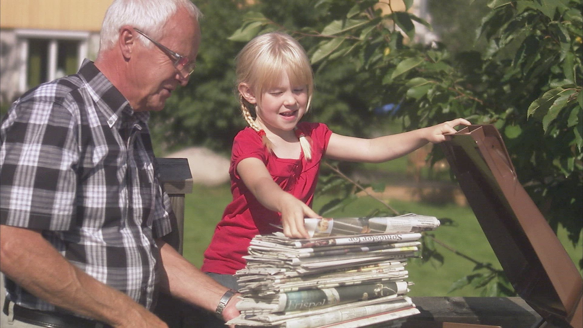 boy at overloaded waste disposal site in Stockholm - recyling station