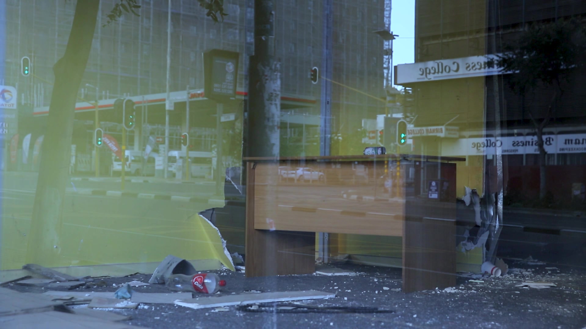 Tilt down to discover a lone person walking the empty streets of Downtown LA. Desolate and eerie, Los Angeles under lockdown appears to be a ghost town.