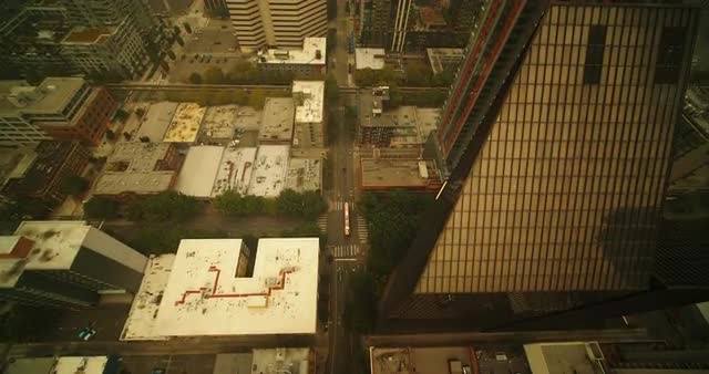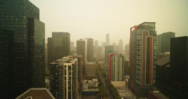 1117829 - Wide long 1 mintue take of downtown Seattle cooridor in smoke