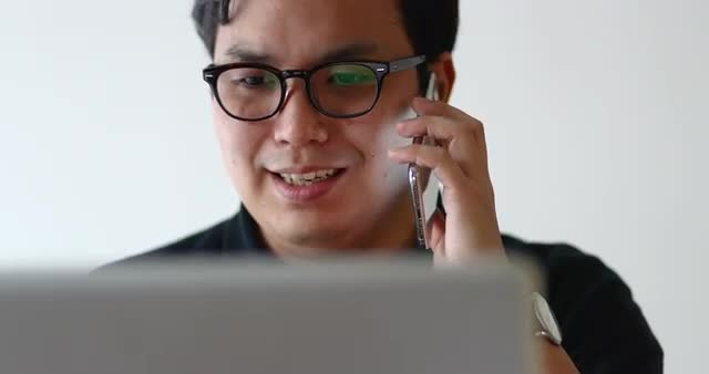 > Young Japanese man working on his laptop