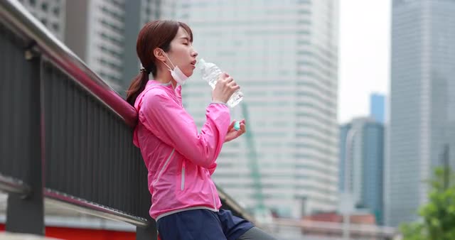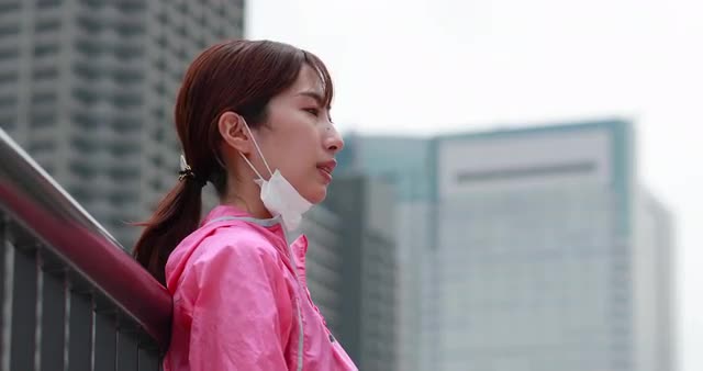 > Young Japanese man wearing medical mask downtown Tokyo