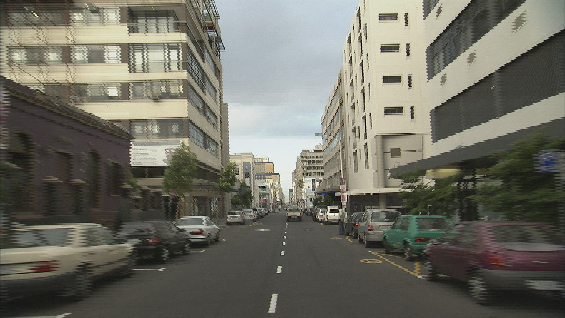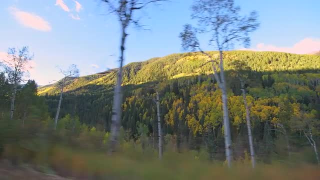 > Point of view driving in car in Aspen, Colorado city construction buildings