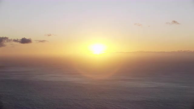 > Aerial sunset shot in Oahu