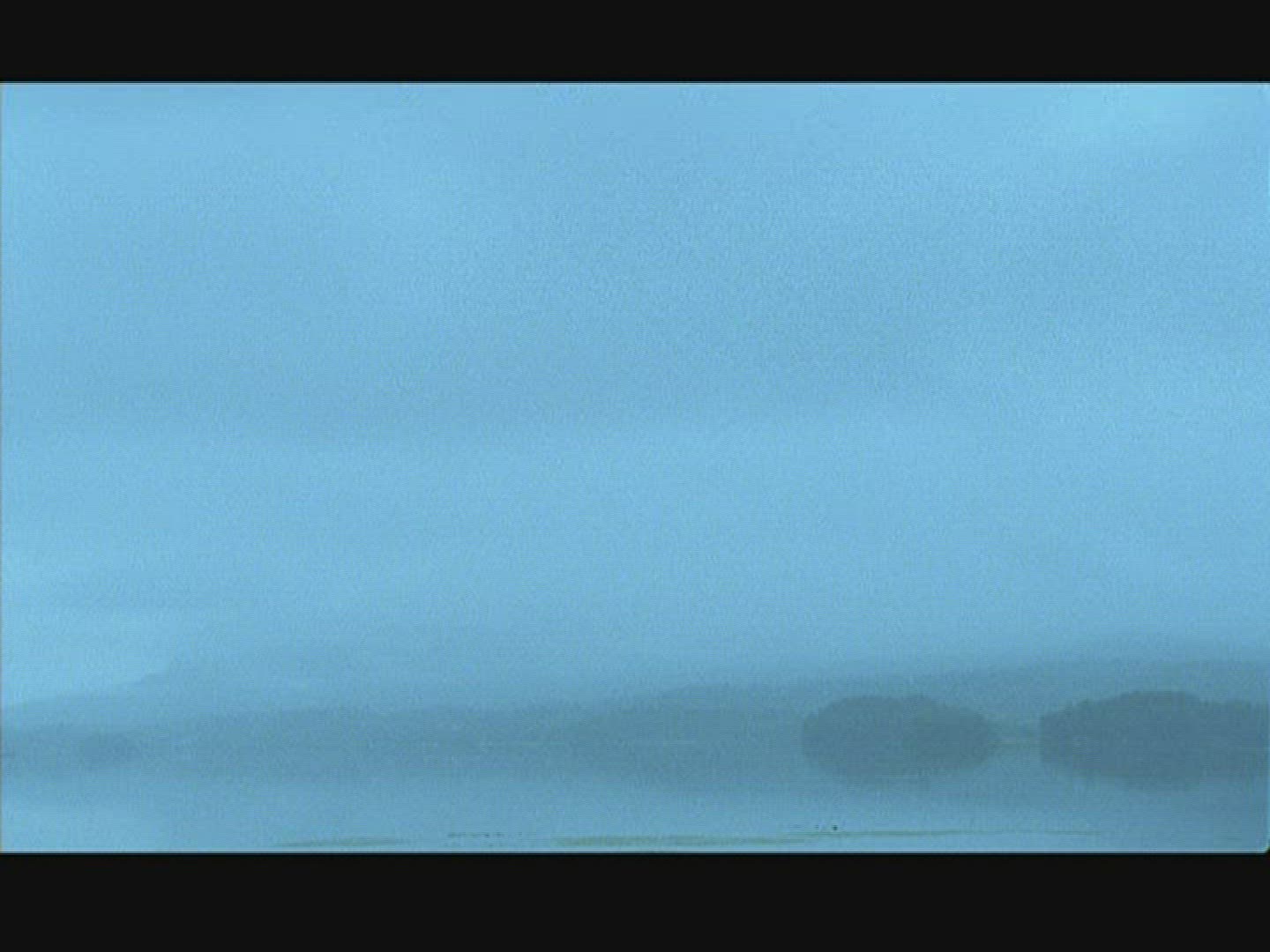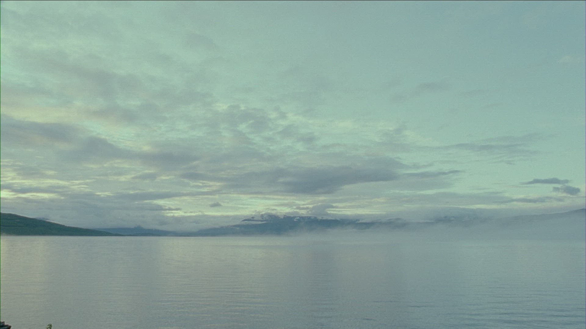 > lake in foggy weather - dark clouds