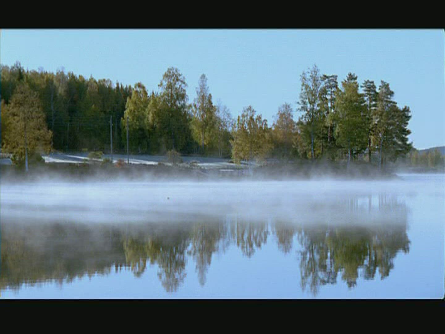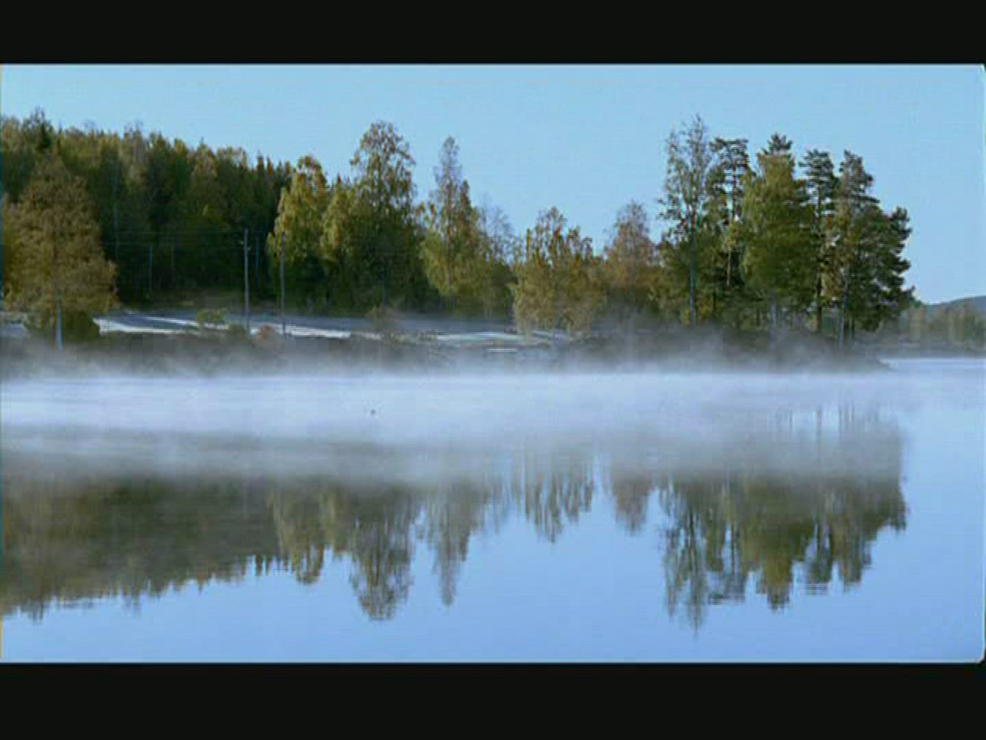 lake and forests - fog and dark grey clouds