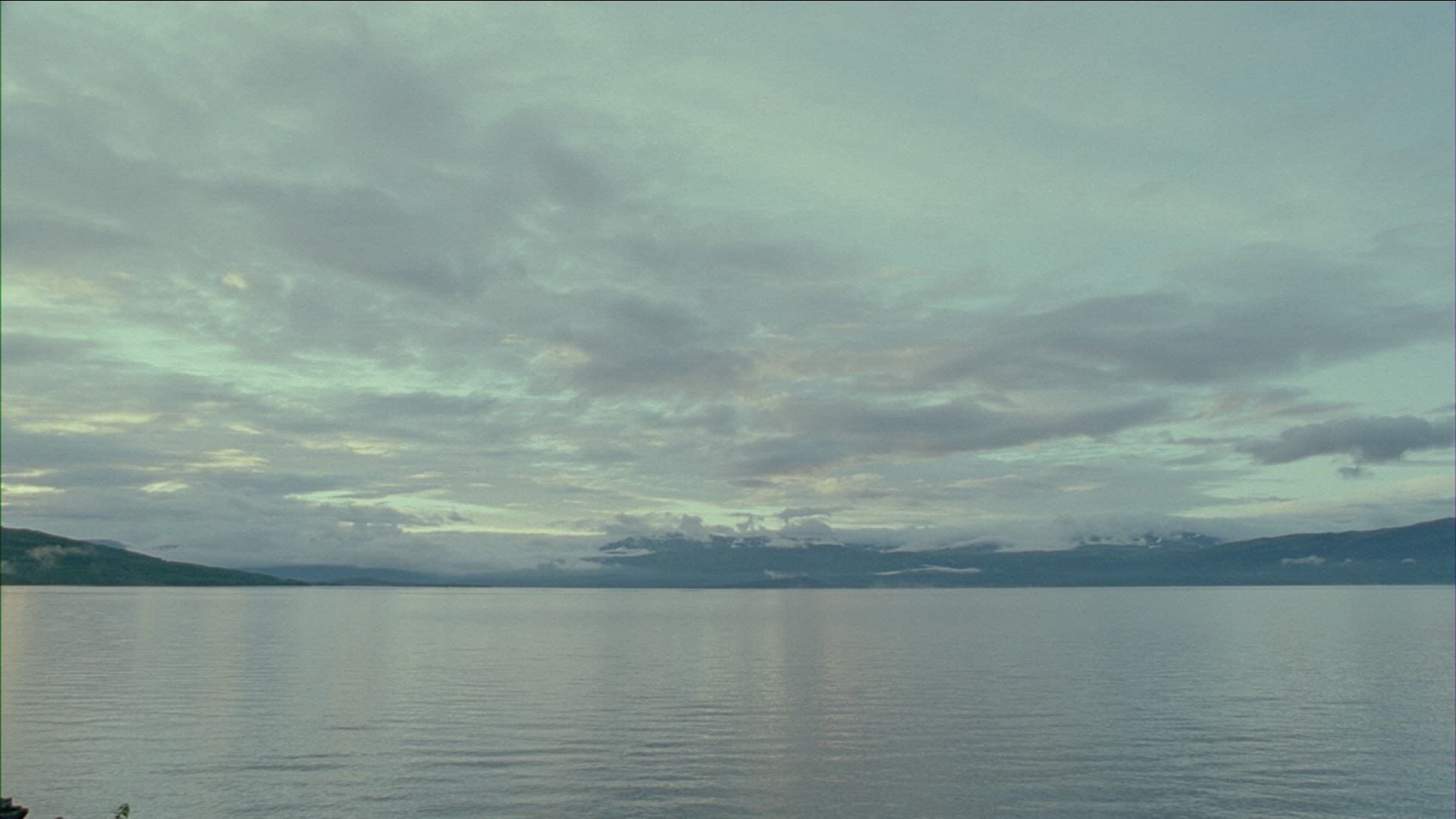 lake in foggy weather - dark clouds