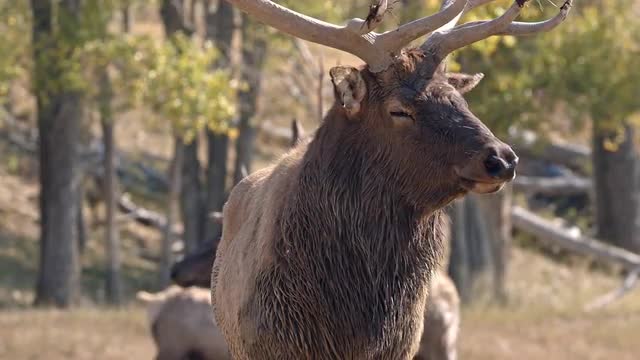 Close up view of Bull Elk as another walks in behind it