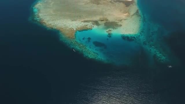 Aerial view of Cliff Lakes colorful water along the shore in Montana as it looks tropical.