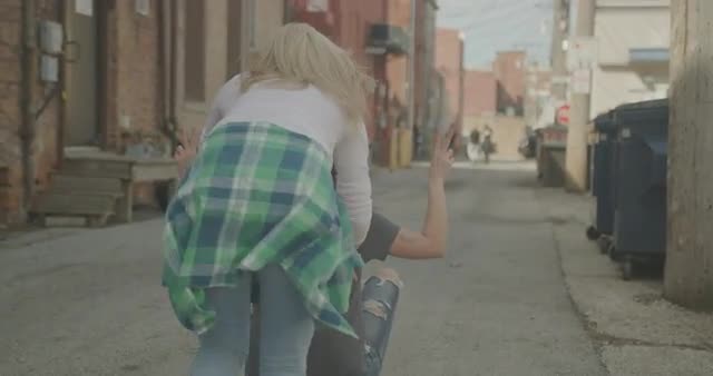 932003 - Friends learning how to skate in an alley