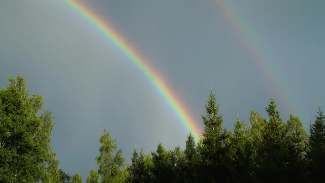 1116748 - rainbows behind green grees