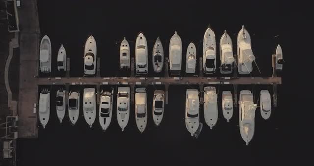 > Aerial top down of boats at a marina