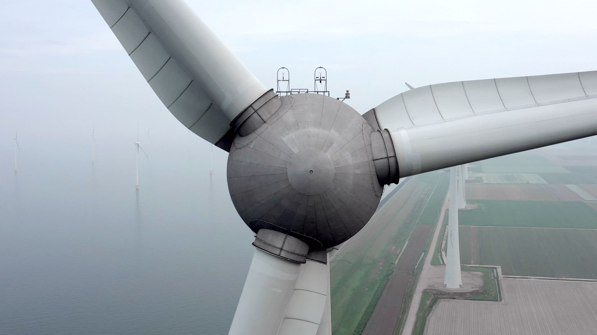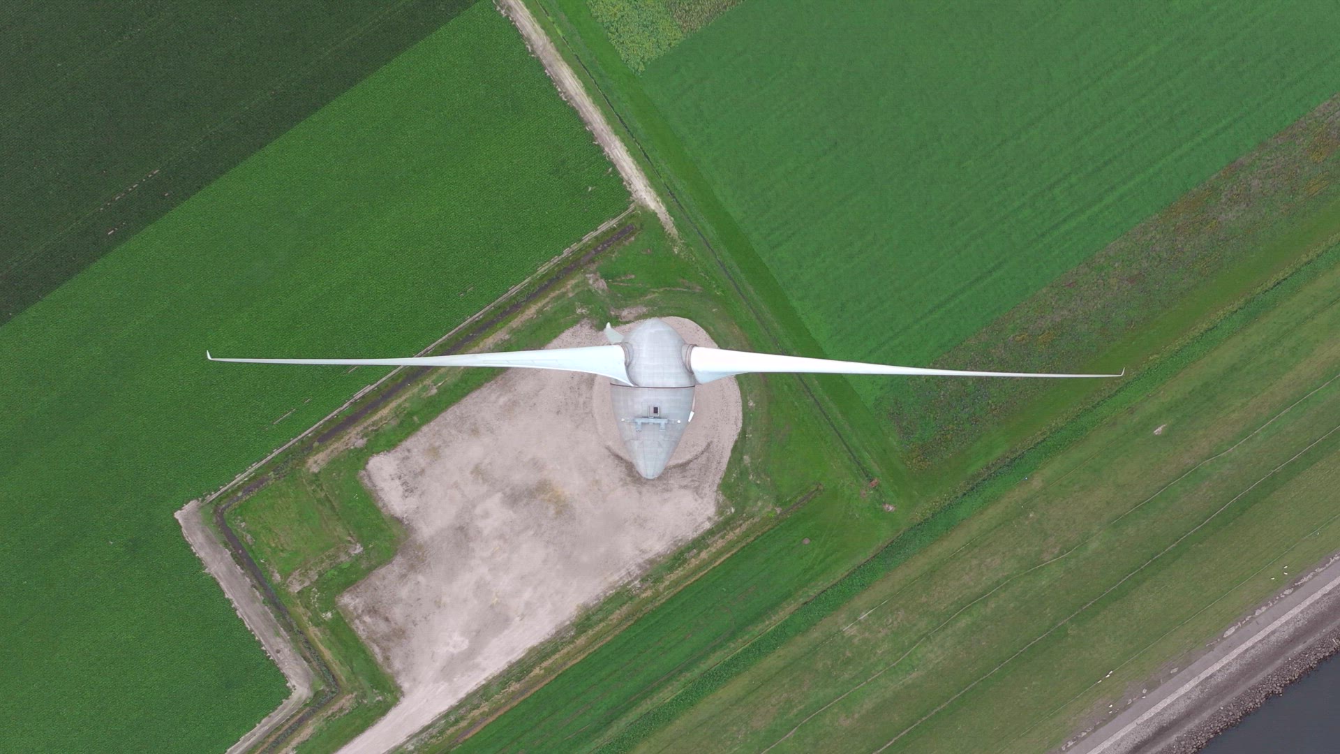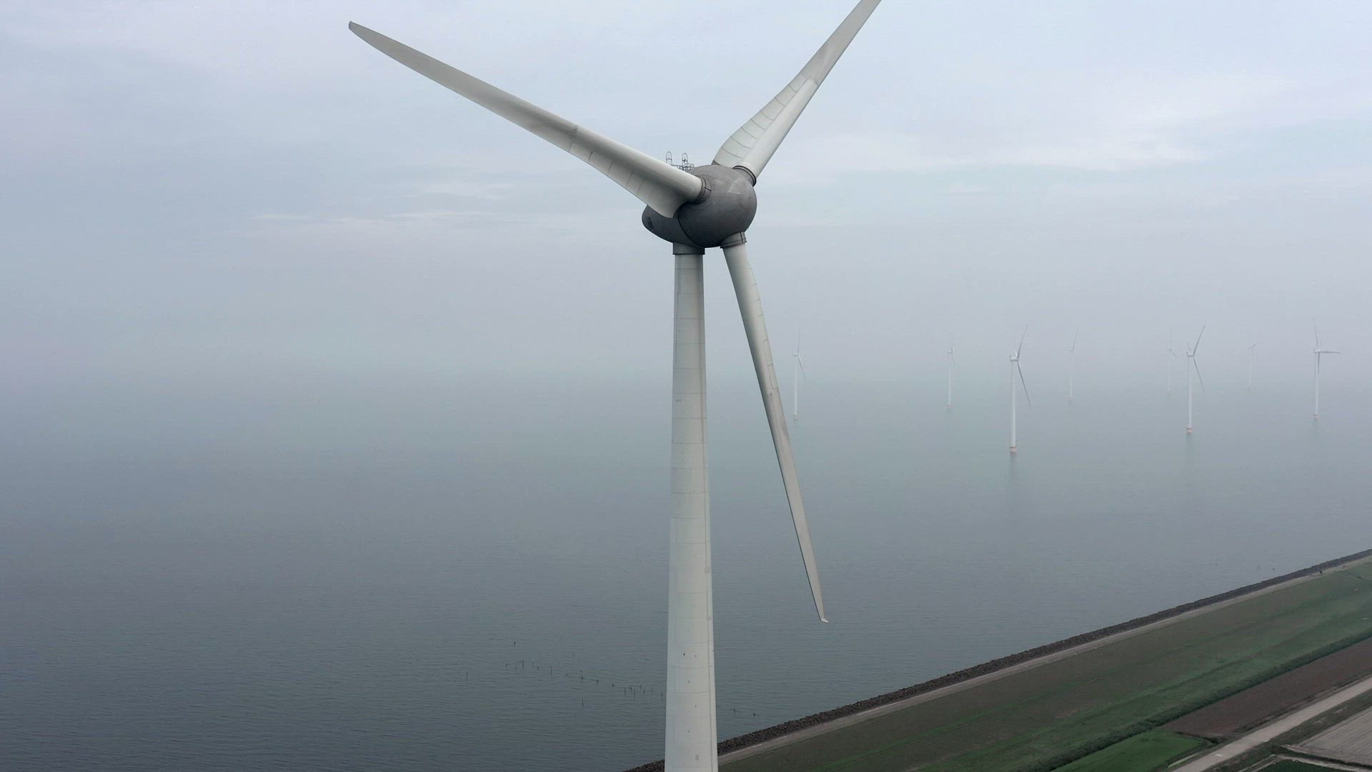 AERIAL MS Wind turbines in patchwork fields / Eemshaven, Groningen, Netherlands