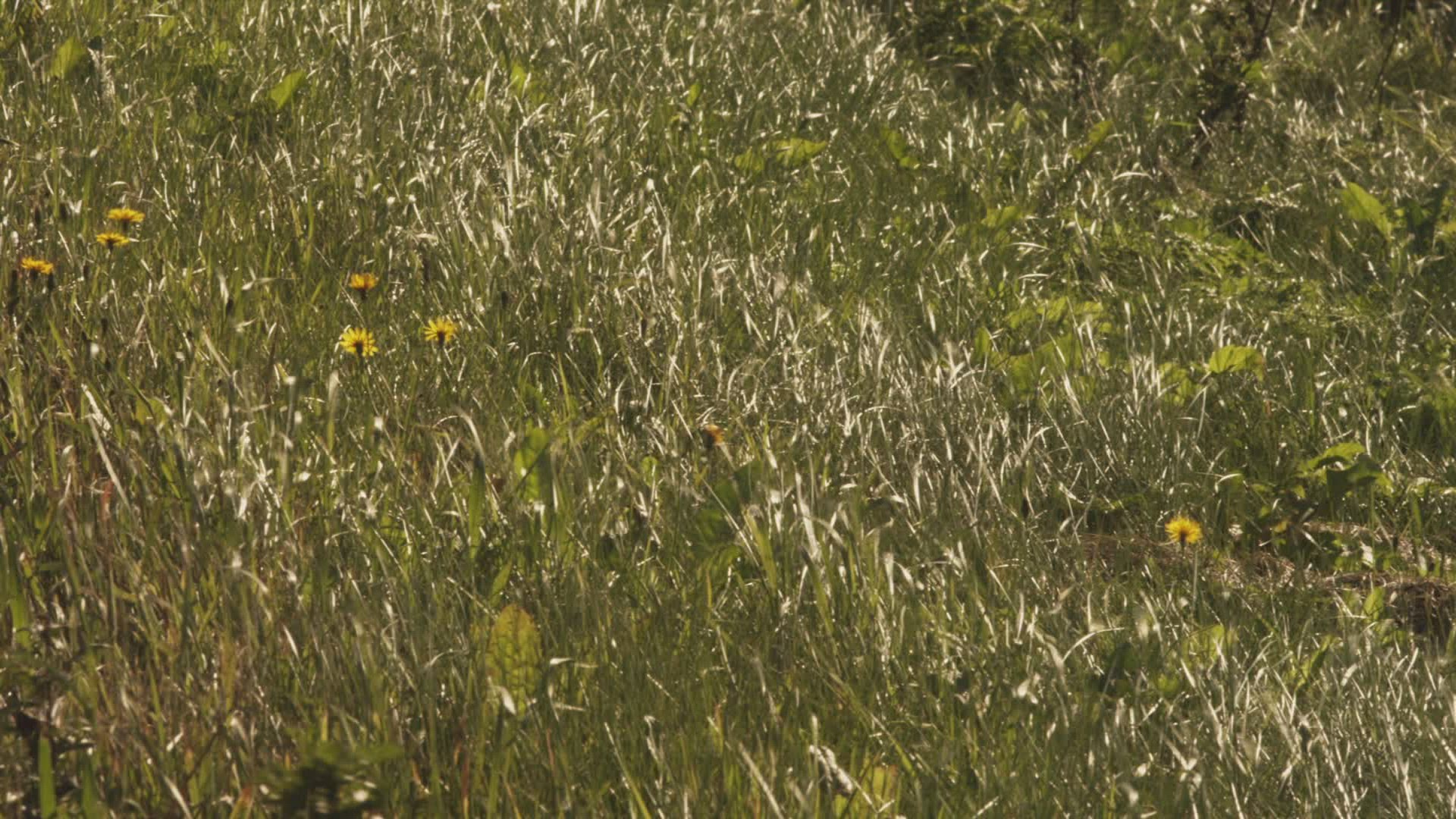 Tall grass with dew on it swaying in the breeze sunrise