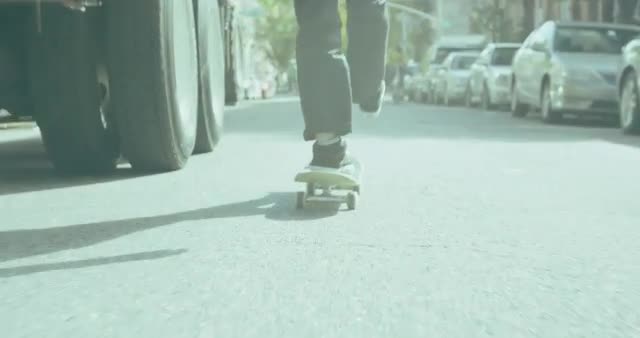 Skateboarder riding skateboard in downtown city of Seattle