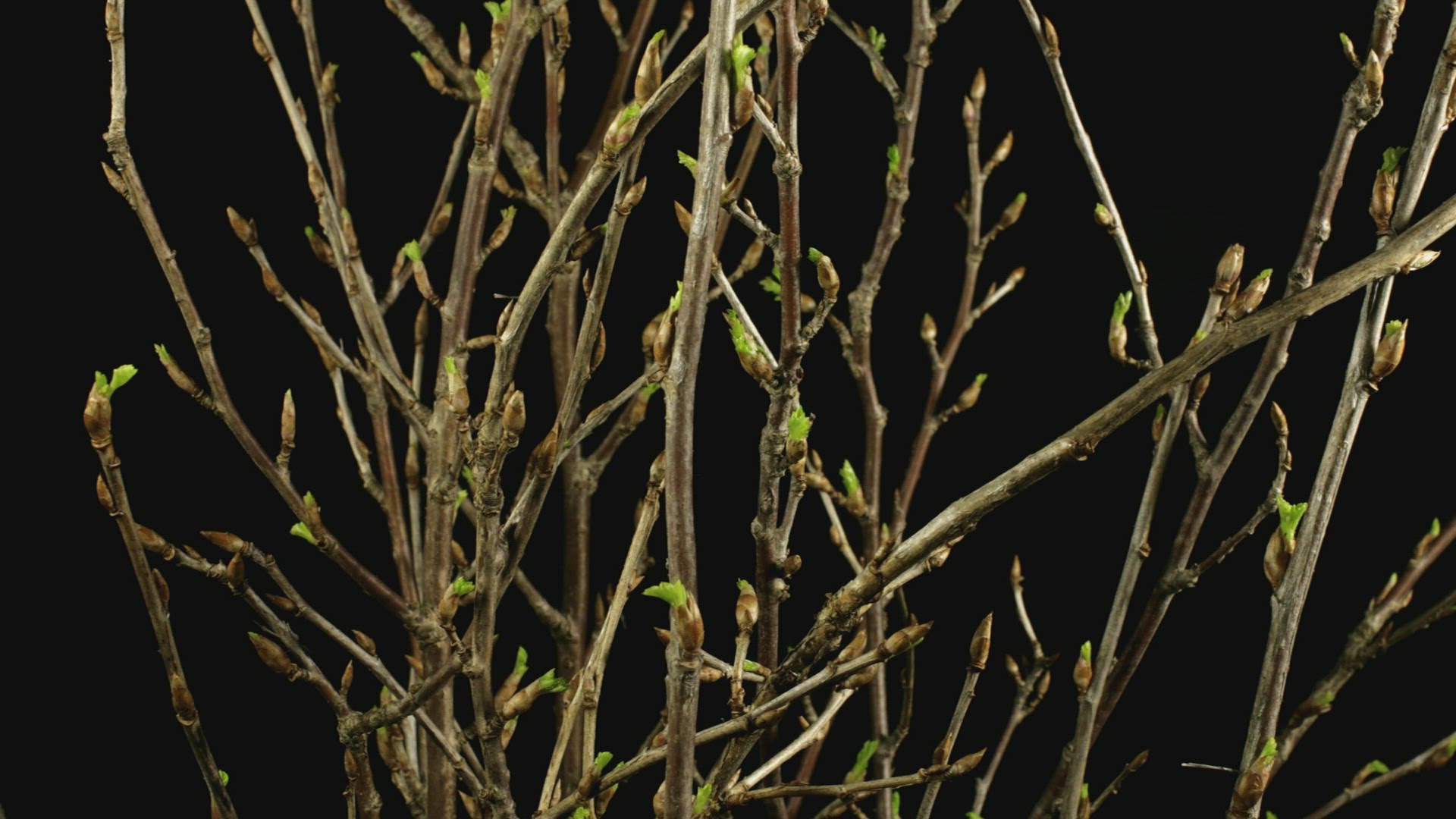 Time-lapse of drying tree leaves isolated on black background