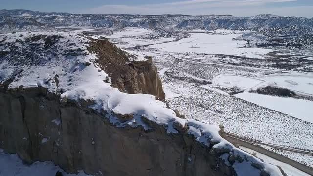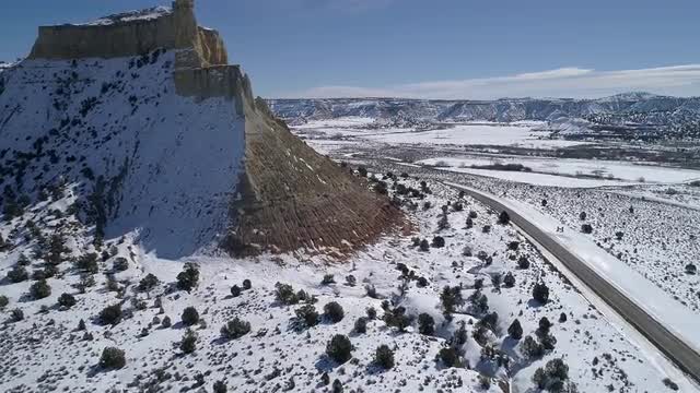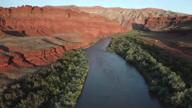 Aerial footage of two airplanes flying over the desert landscape of Southern Utah during sunrise
