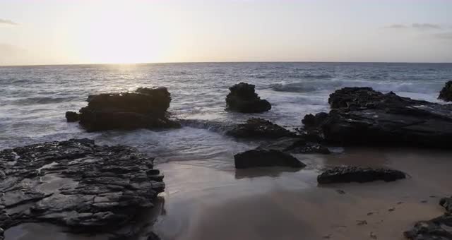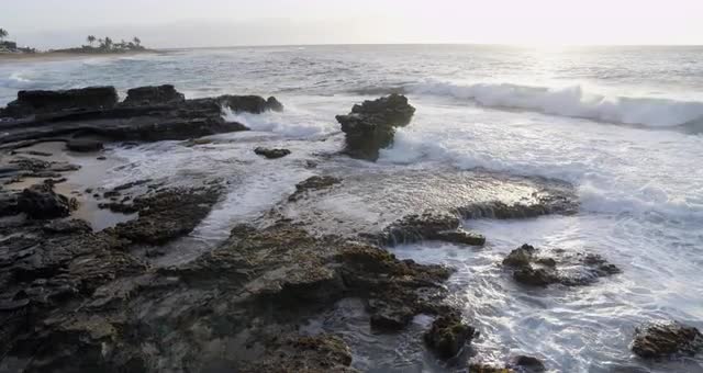 1120031 - Aerial shot of waves flowing in through rocks
