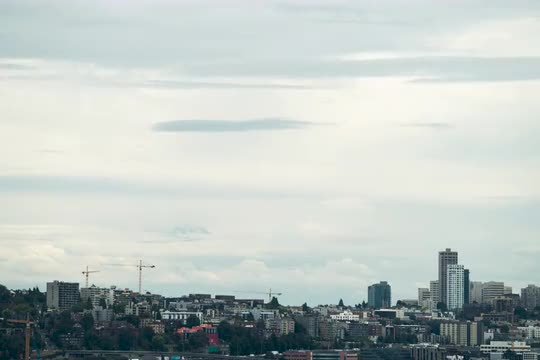 > Close Up Timelapse of Seattle Skyline from Fremont with Dramatic Clouds