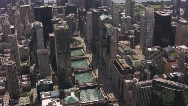 Aerial Hyperlapse at Chicago Navy Pier during Blue Hour with Ferris Wheel, Dolly Out and rush hour car light trails