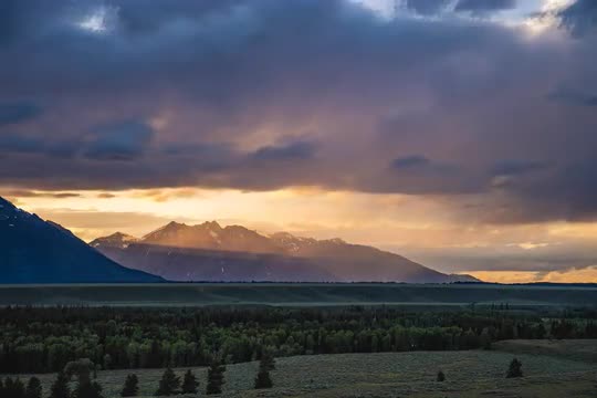 Clouds and Rain dance in golden light over the Teton Valley in Jackson Hole, Wyoming