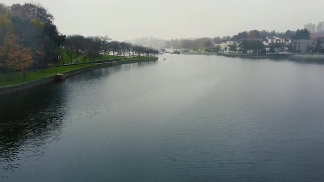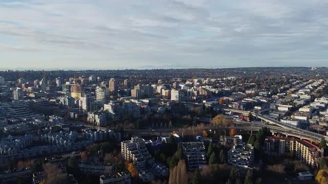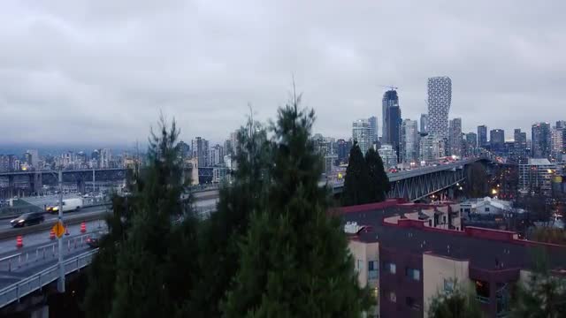 Top down view of the bridge with traffic and boats in marina