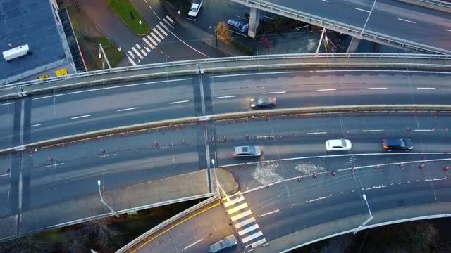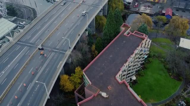 Top down view of the traffic on the bridge during construction