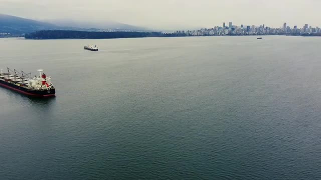 Top down view of the cargo ship near Kitsilano beach in Vancouver