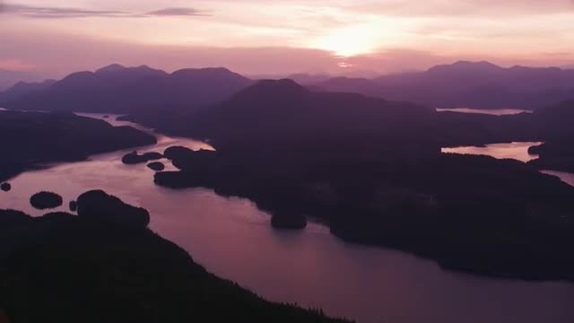 > Aerial view of Vancouver on a sunset with a rainbow