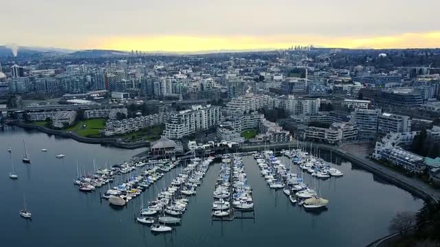 861754 - Aerial view of vibrant sunset over city on Thanksgiving