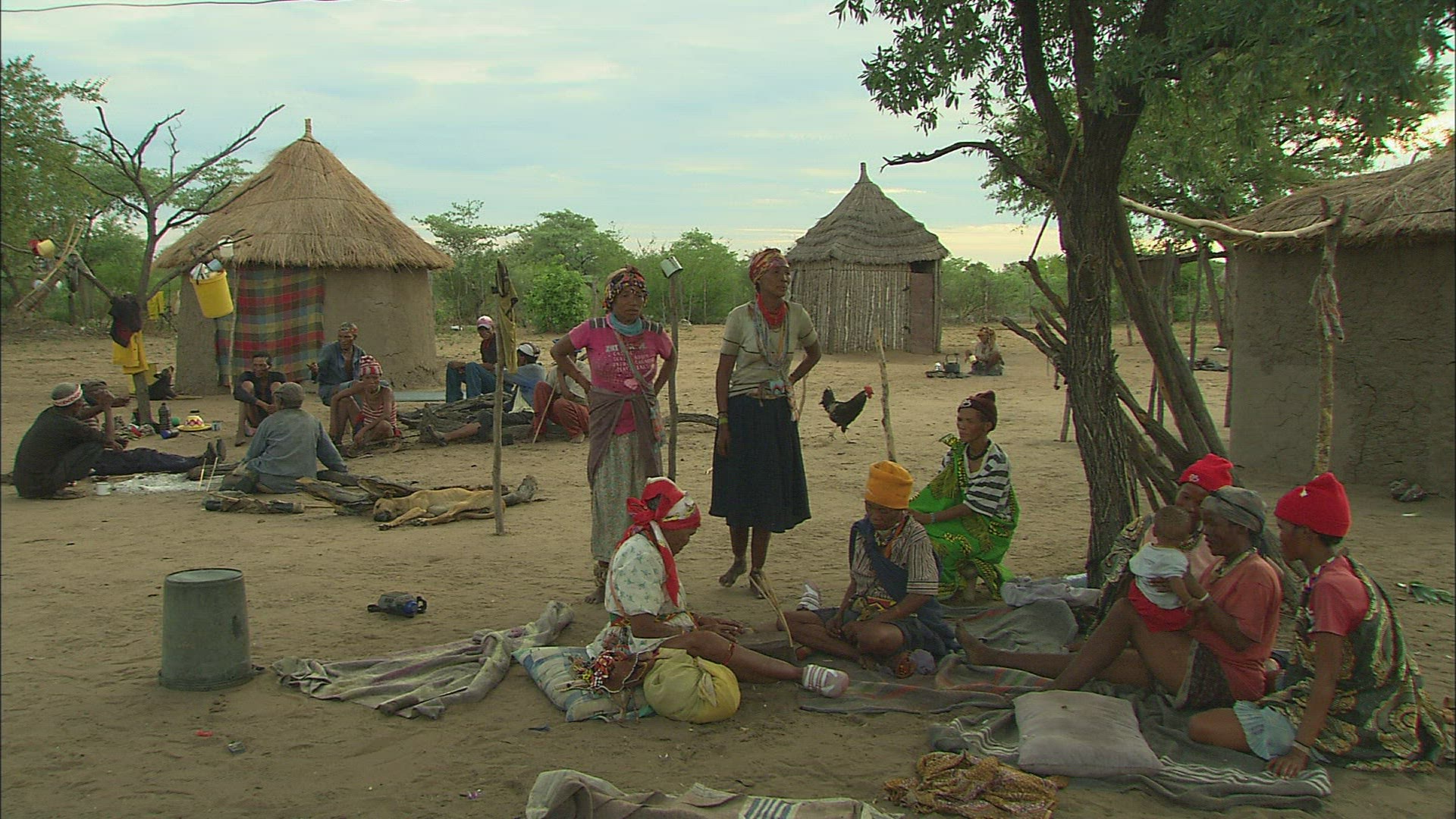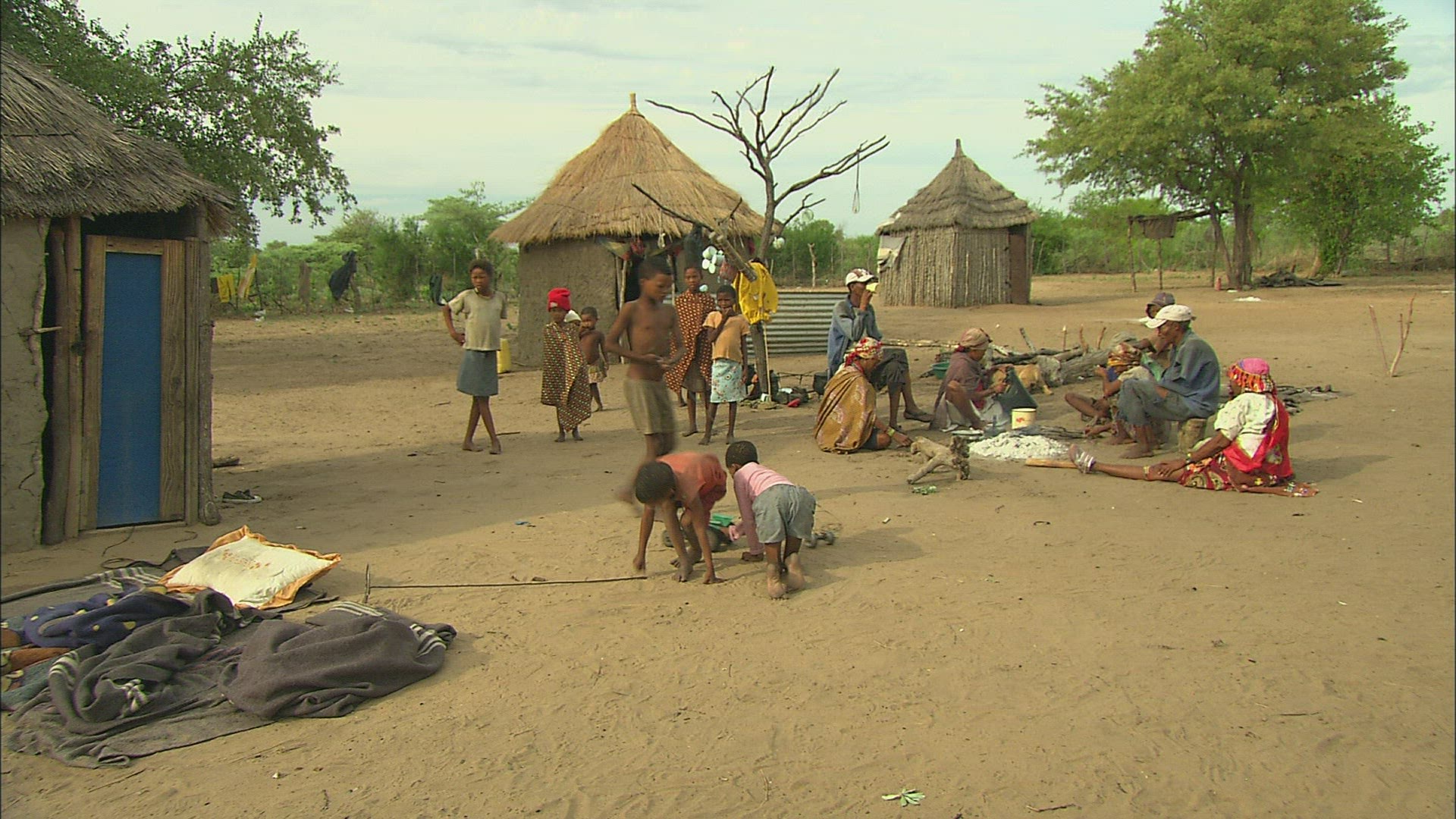 > village around a desert oasis surrounded by sand dunes.
