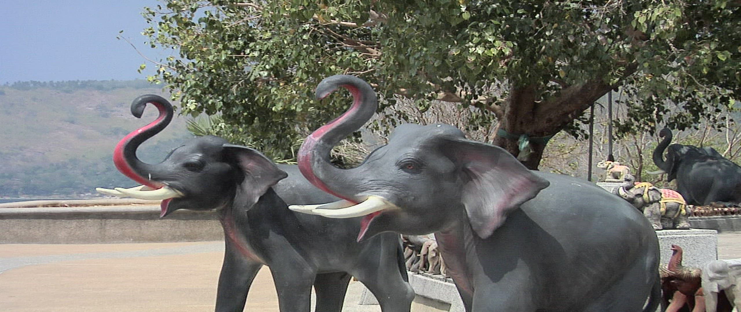 > Tourists enjoying trip by elephant, Phuket, Thailand