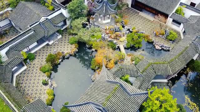Top down view of Chinatown in Vancouver on a cloudy autumn day