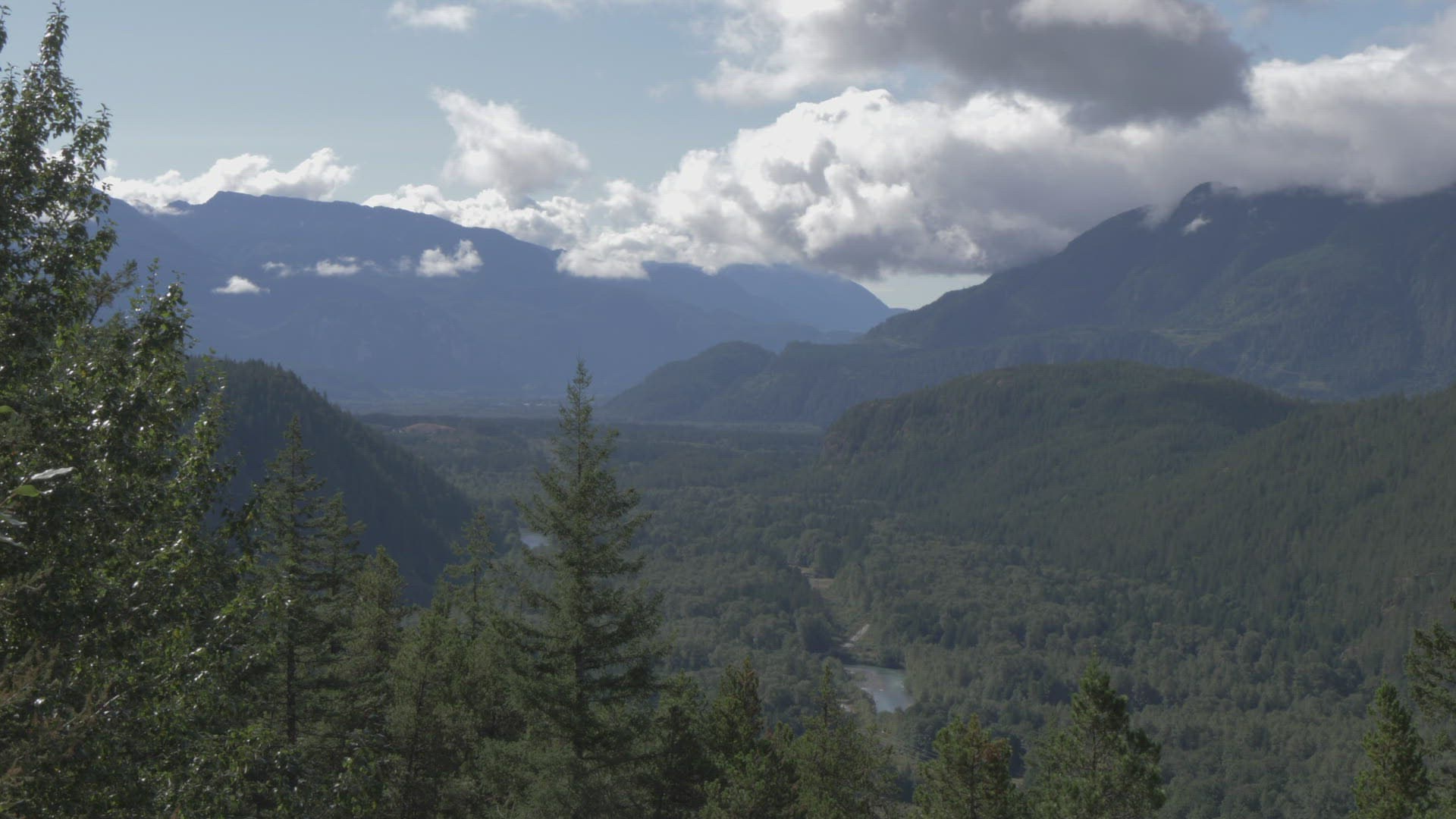 > Top down view of the wild river in Canada on a sunny day