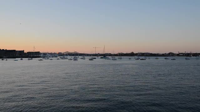 Aerial view of the bridge in Vancouver and empty beach in downtown