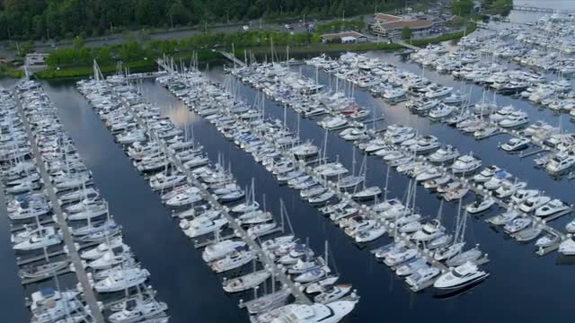 Aerial view of the bridge and Vancouver downtown in the fog