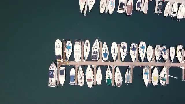 > Small boats floating in the calm water on the sunny day