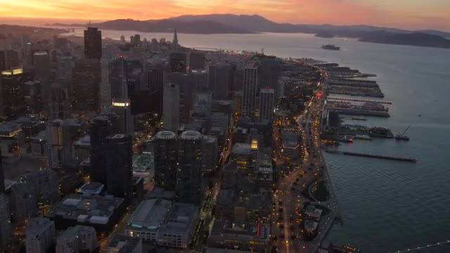 > Fly towards Vancouver downtown on a cloudy day in the evening