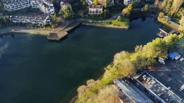 Fly towards the pier, over the river during low tide