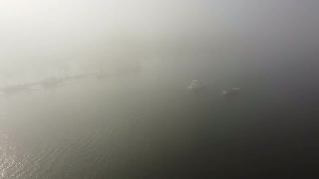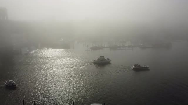1129156 - Top down view of two boats covered with the smoke in Vancouver creek