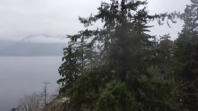 1128134 - Aerial view of English bay in Vancouver with snowy mountains on background