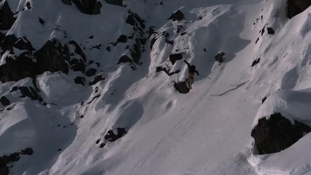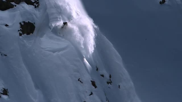 > Skier dropping cliffs