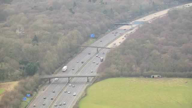 > Aerial view rural Motorway England