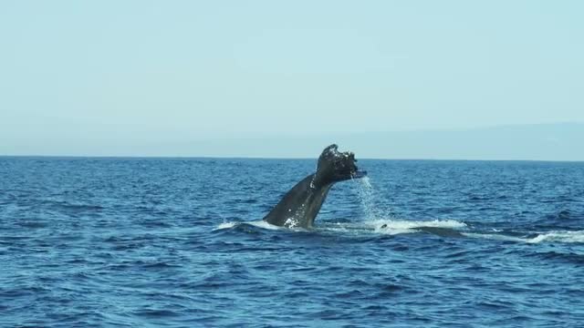 > Humpback Whale tail Fluke mammal swimming coastline, California, USA