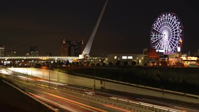 674216 - Time-lapse footage of ferris wheel in Tokyo at night, Tokyo, Japan