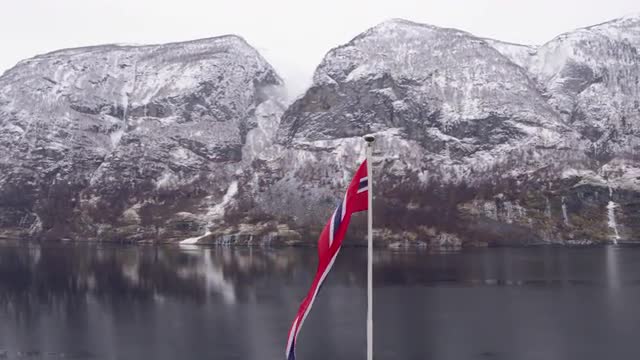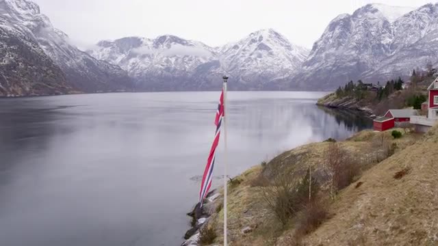 > POV dogsledding animal team working winter landscape Norwegian