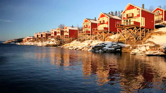 Water motion ripple effect reflection Nordic houses