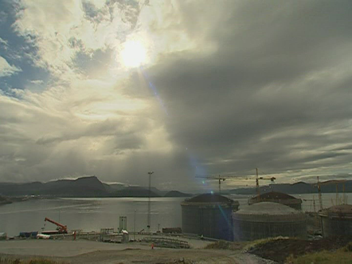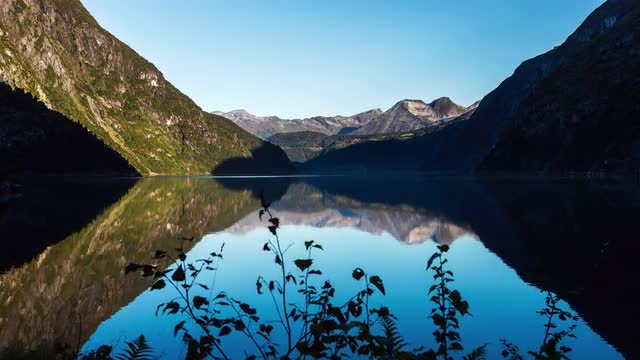 > Time lapse Fjord dawn breaking winter scene tourist resort Norway