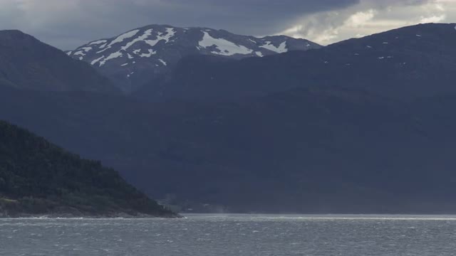 Time lapse sunrise dawn breaking Fjord land landscape winter snow skyline Norway Scandinavia