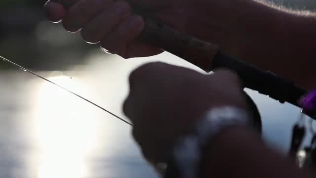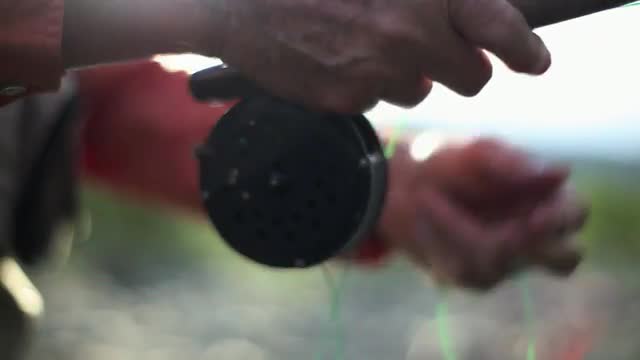 Closeup of fly fisherman's hands tying a fly.